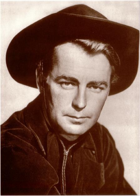 A modern postcard of Alan Ladd in the 1948 movie _Whispering Smith_.