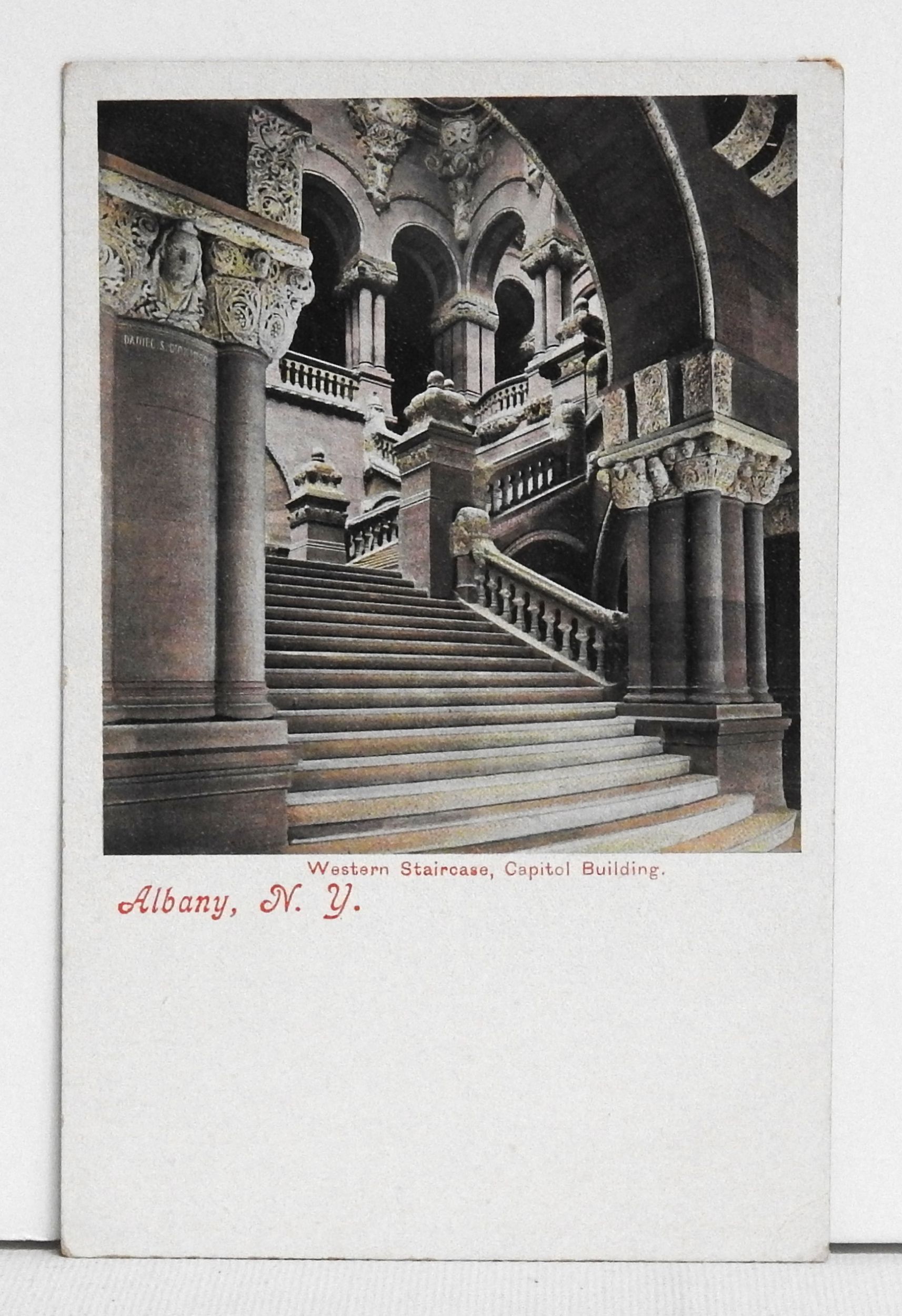 Antique Lithograph Postcard; Western Staircase, Capitol Building; Albany, New York; Published by H. C. Leighton Co.; Made in Germany; Undivided Back; Like-new condition.Seller Information
