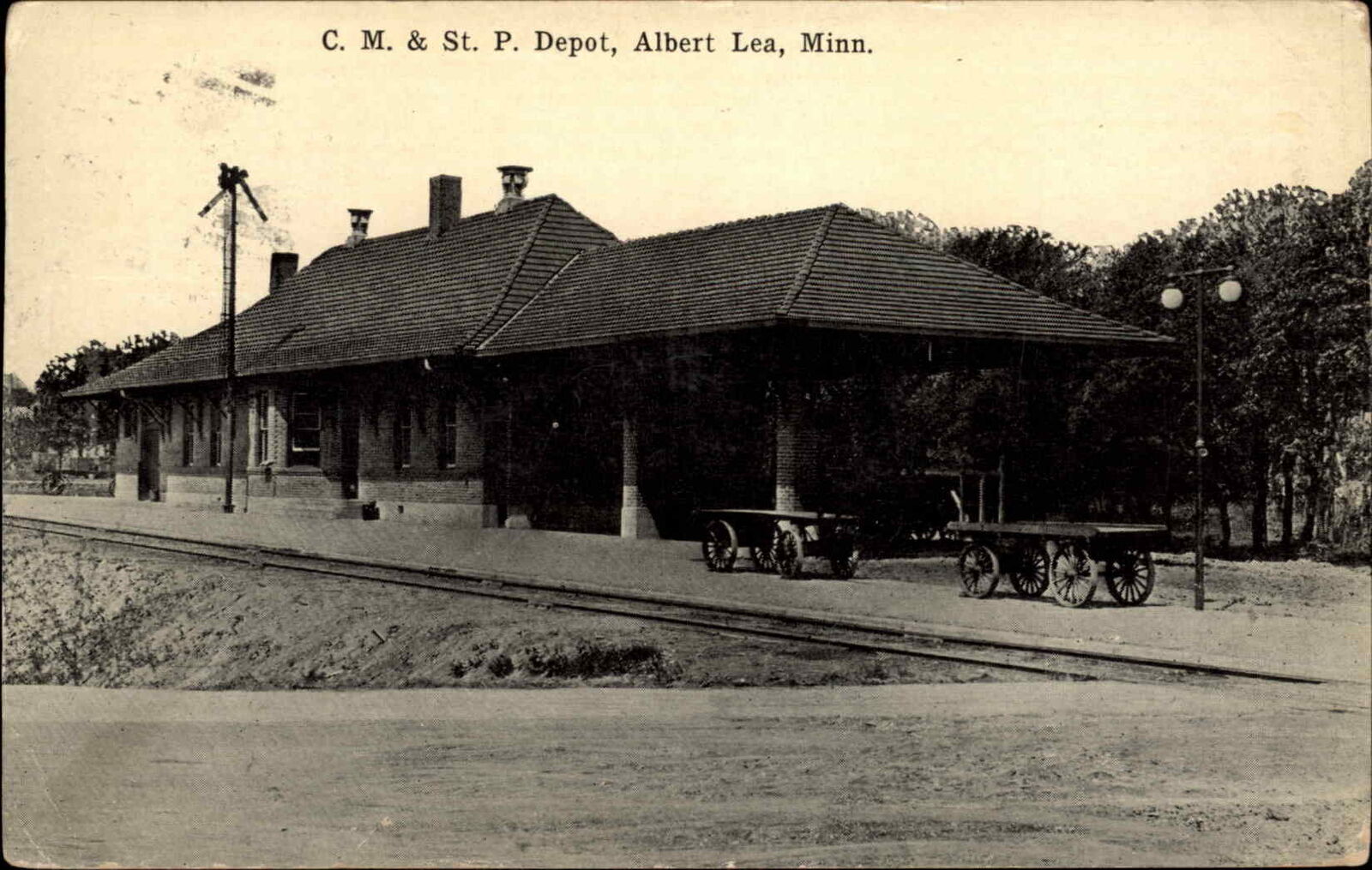 Albert Lea MN CM&St.P RR Train Station Depot c1910 Postcard