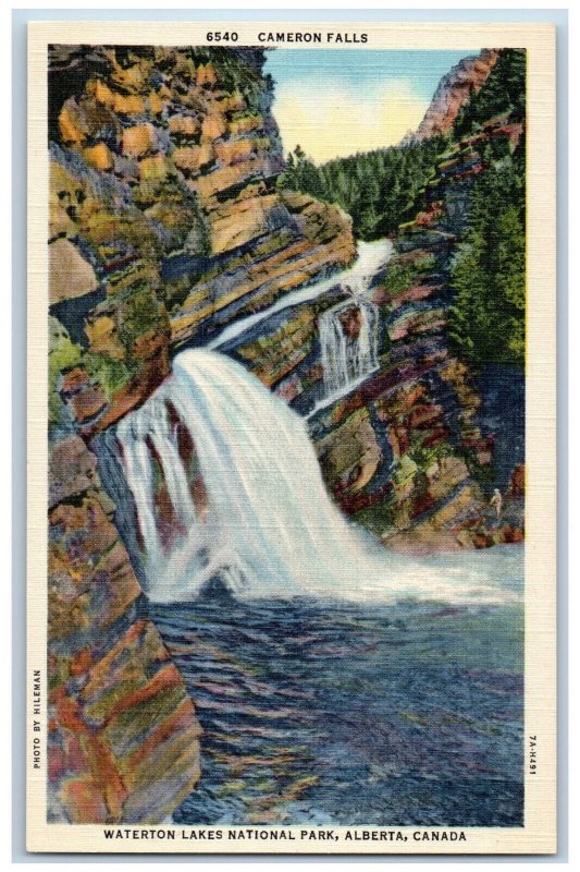 Alberta Canada Postcard Cameron Falls Wateron Lakes National Park c1930's