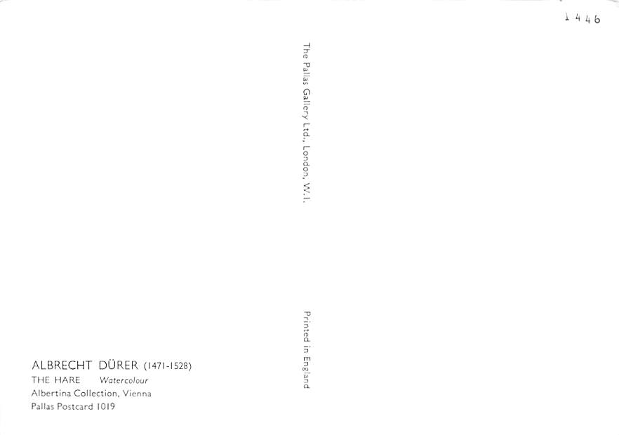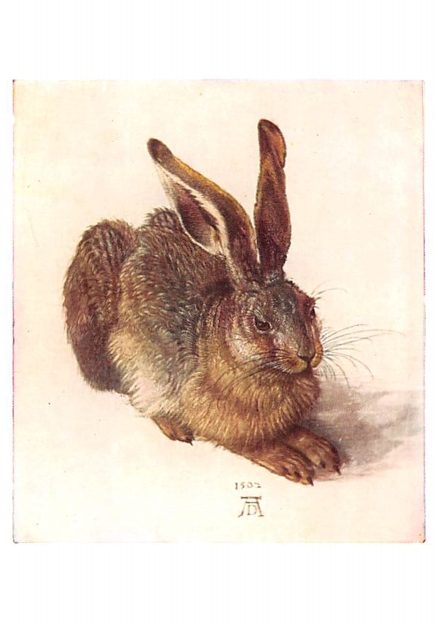 Albrecht Durer - The Hare Grade: 1 Category: Continental Size Postcard, Approx 4 in x 6 in (10 cm x 15.25 cm) Product Size: Continental size: 4X6 inches (10.5 cm x 15 cm) Grading Scale: Grade 1 = Perfect corne ... Read More