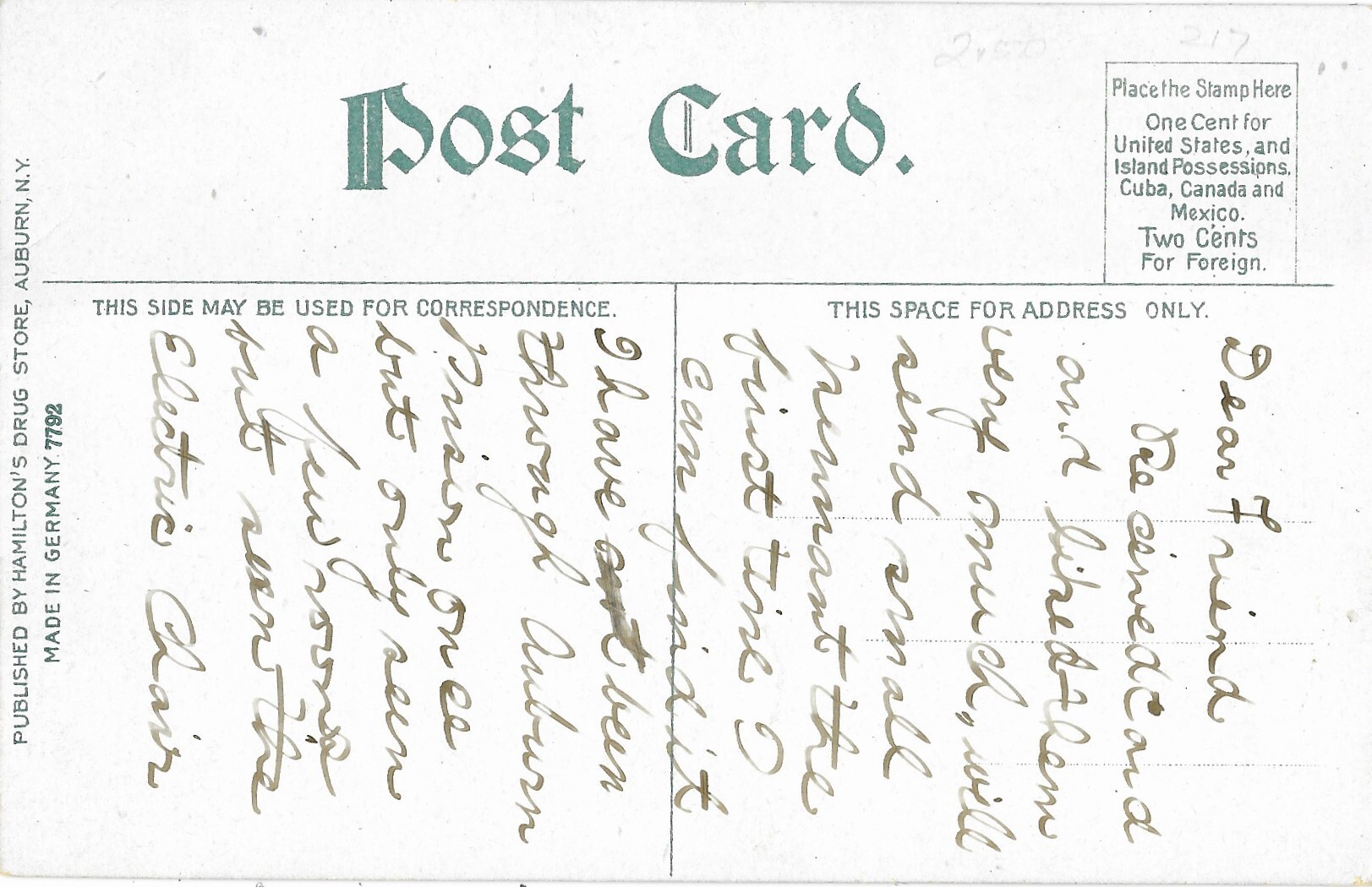 Message written on back side about a prison tour but never mailed. Printed in Germany