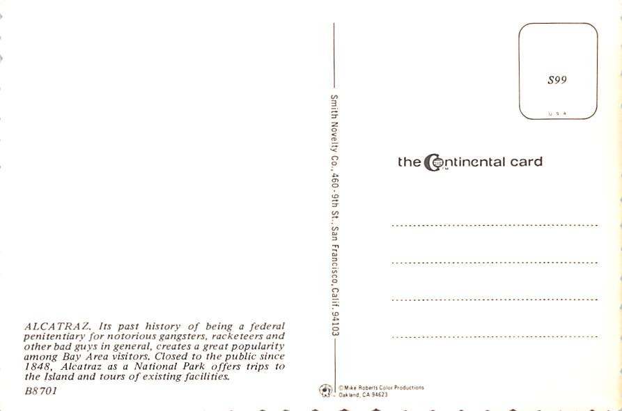 Alcatraz Island - California Grade: 1 Category: Continental Size Postcard, Approx 4 in x 6 in (10 cm x 15.25 cm) Product Size: Continental size: 4X6 inches (10.5 cm x 15 cm) Grading Scale: Grade 1 = Perfect co ... Read More