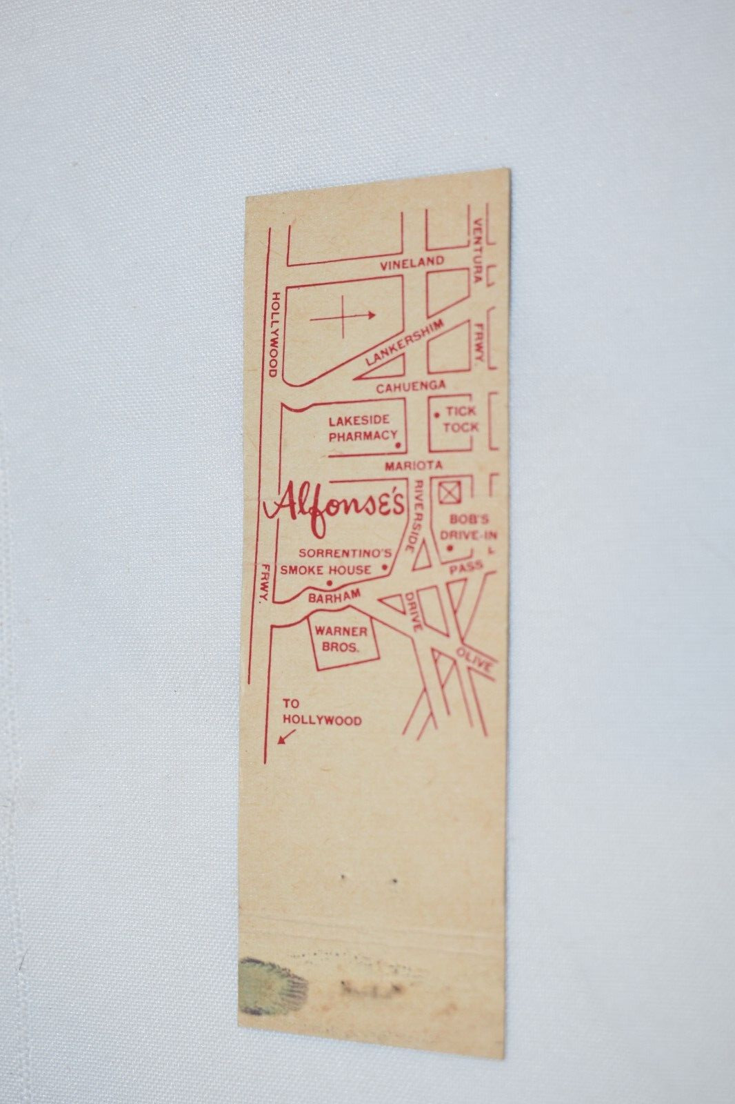 Alfonse's Toluca Lake Swan Map 20 Front Strike Matchbook CoverPre-owned. As shown. See photos.Combined shipping and local pickup are available. See store for related items.