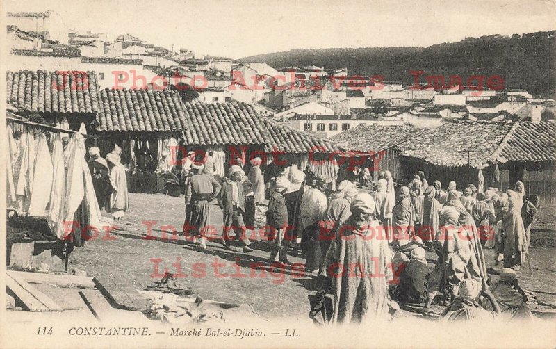 Algeria, Constantine, Marche Bal-el-Djabia, LL Pub No 114 Product Photo Click Image for Larger Preview Product Information This is a nice vintage early printed hand colored postcard showing a scene of the Marche Bal ... Read More