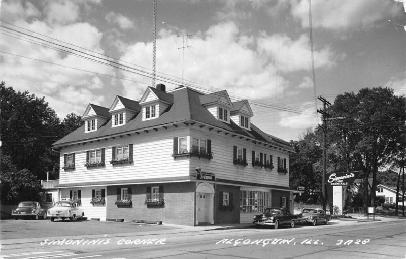 Algonquin Illinois Simonini's Corner, Real Photo, Vintage Postcard U22768