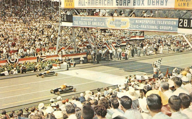 ALL AMERICAN SOAP BOX DERBY AKRON OHIO POSTCARD (1960s)
