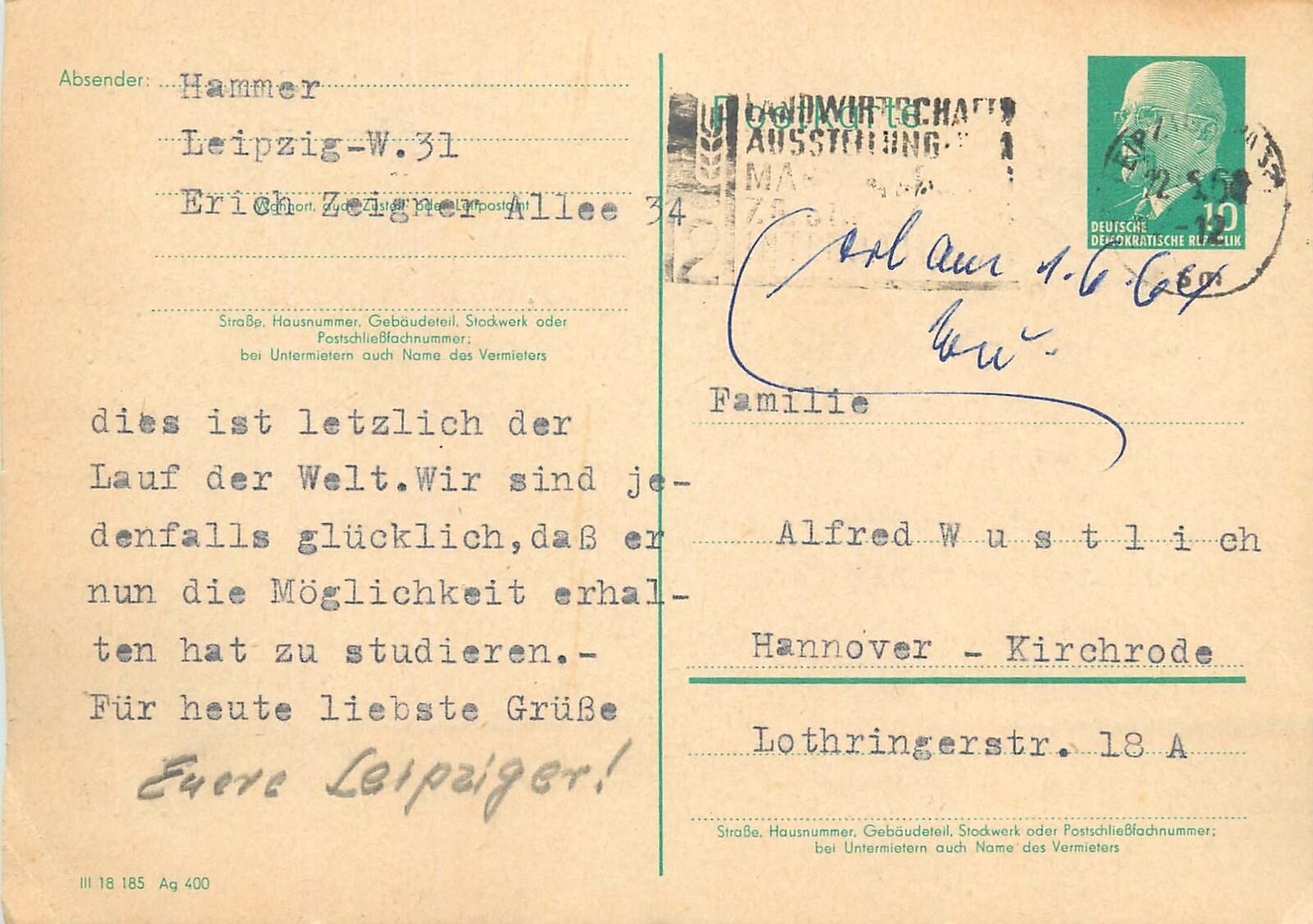 Allemagne postkarte postal stationery Leipzig