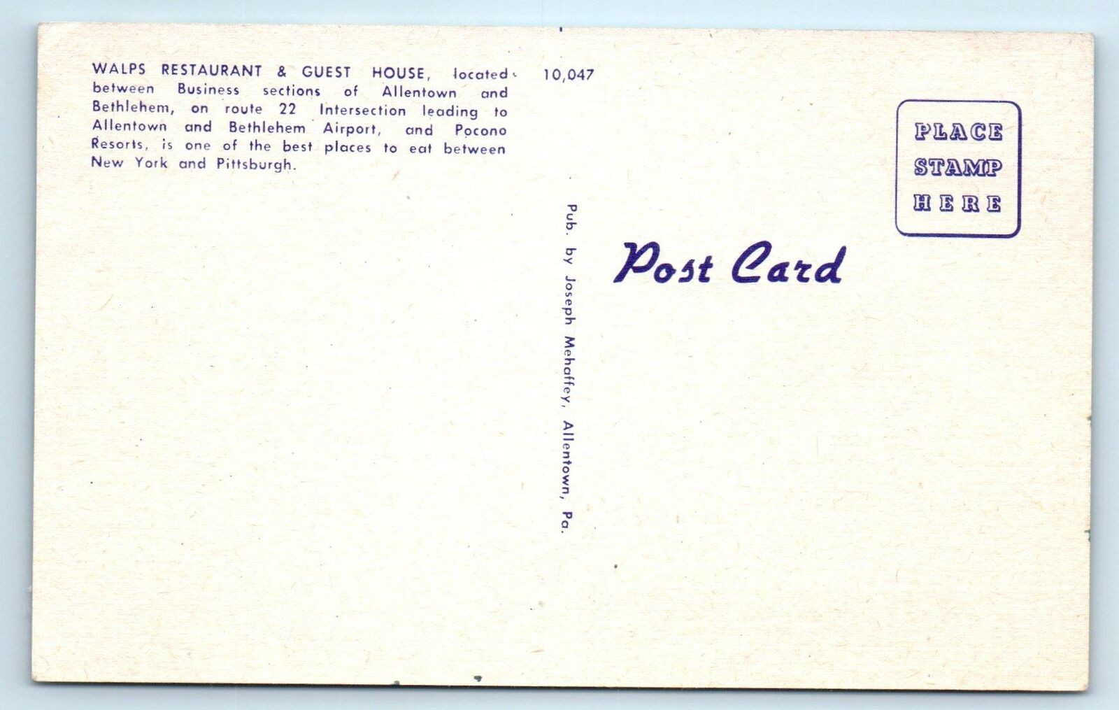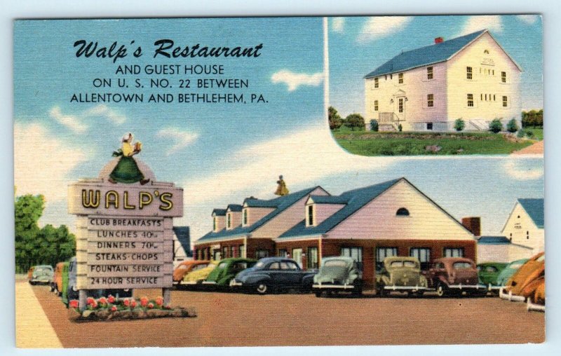 ALLENTOWN, PA~ WALP'S RESTAURANT c1940s Car Roadside Linen Postcard