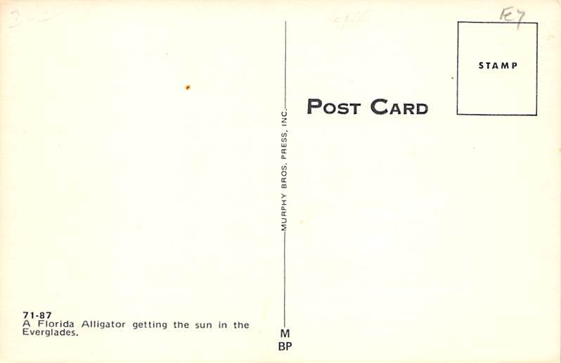 Alligator getting sun Florida, USA Alligator Postcard Postal Date: {{Product Field 4 ( Postal Used, Unused)}} Grade: 1 Size: Regular Size Postcard - approximately 3 1/2 inch x 5 1/2 inch (9 CM x 14 CM) Grading ... Read More