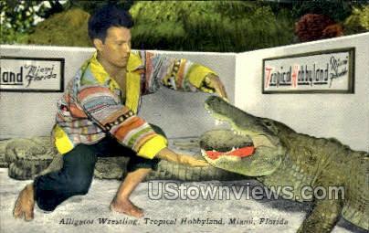 Alligator Wrestling - Miami, Florida FL Postcard ,