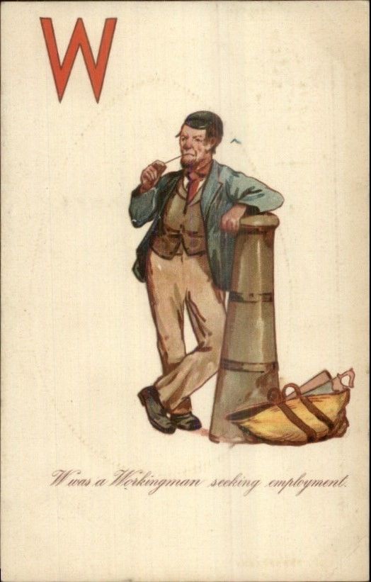Alphabet Large Letter Series W Workingman Carpenter c1910 Postcard