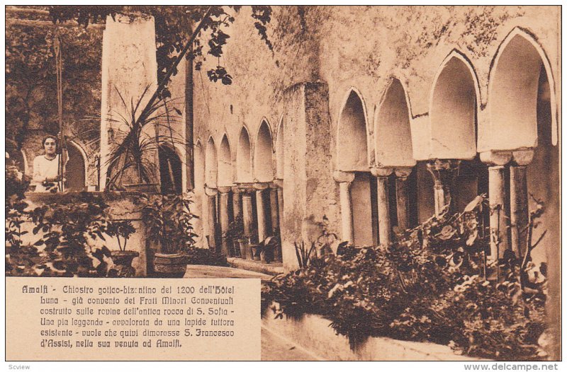 Amalfi , Italy , 00-10s ; Chiostro :: Original Postcard, Size 3.5" by 5.5", Litho, EX.