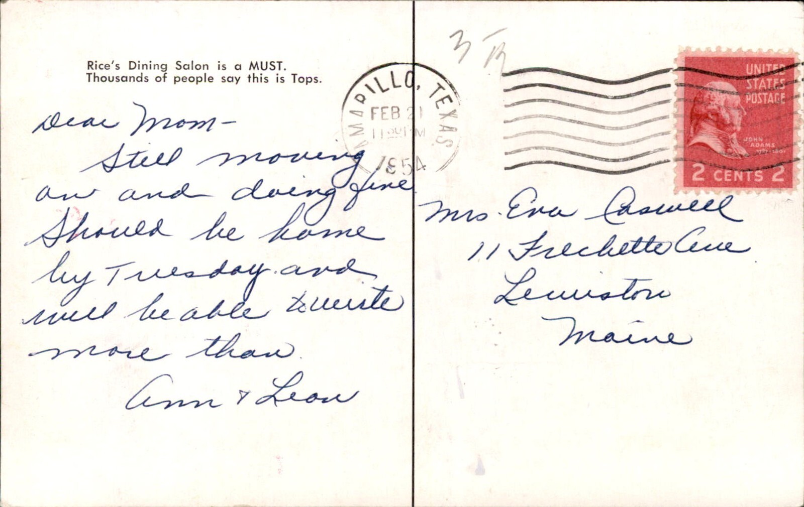 Amarillo Texas Rice's Dining Salon Comic Map c1950-60s Vintage Postcard