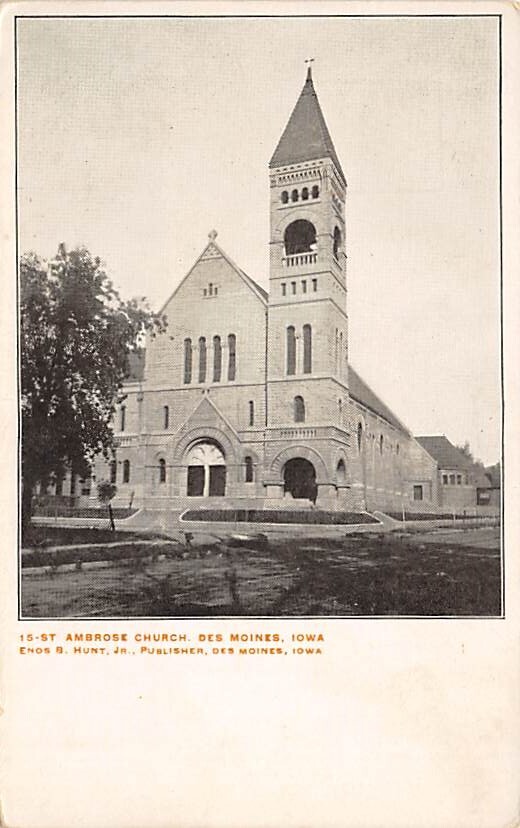 Ambrose Church Des Moines, Iowa Postcard - writing on back Grade: 3 Size: R - Regular size: Approx 3 1/2 X 5 1/2 inch (9 cm X 14 cm) Grading Scale: Grade 1 = Perfect corners Grade 2 = Very Minimal corner wear, ... Read More
