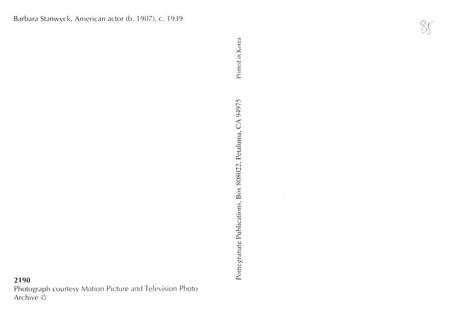 American Actor - Barbara Stanwyck 1 Grading Scale: Grade 1 = Perfect corners Grade 2 = Very Minimal corner wear, no creases Grade 3 = Some corner wear, no creases. Grade 4 = Crease Grade 5 = A lot of damage to car ... Read More
