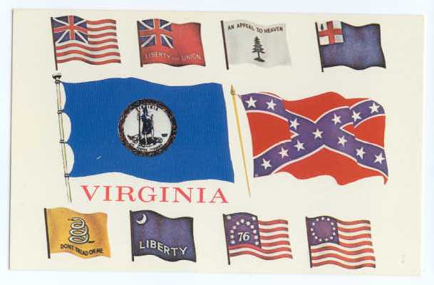 American flags including virginia state flag left centerType of Postcard: STANDARD SIZE CHROME