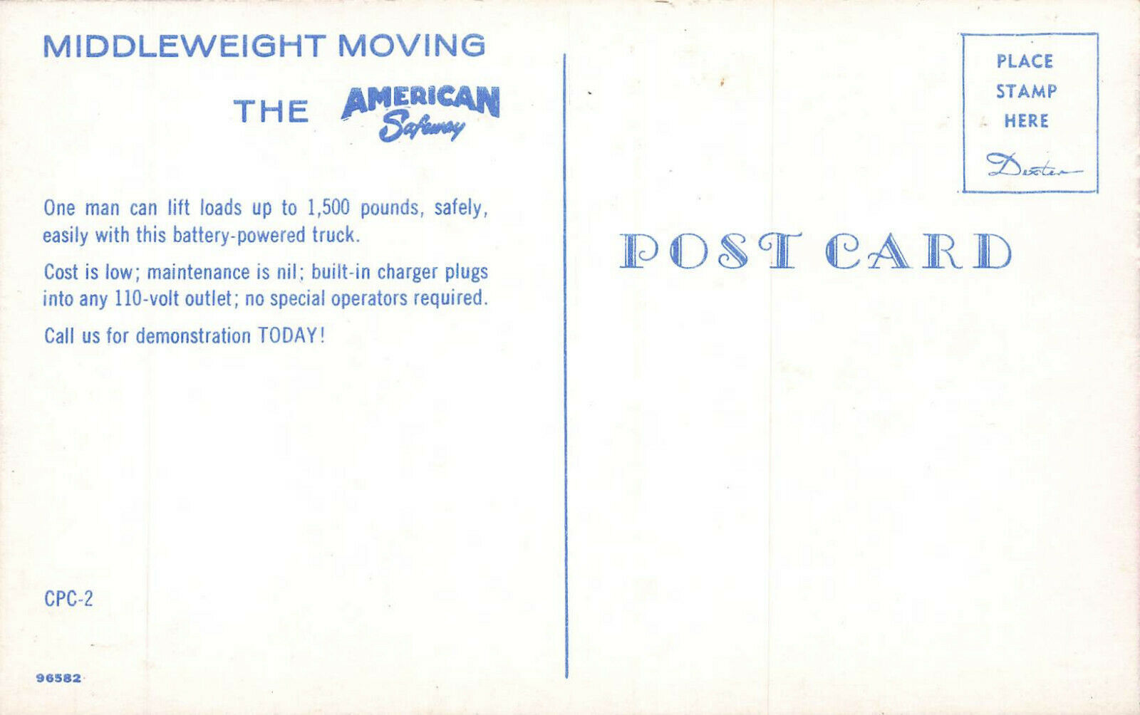 American Safeway Portable Elevating Trucks Middle Weight Lifting Postcard