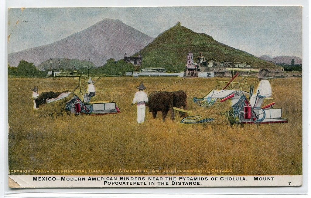 American Threshing Binders Harvest Farming Cholua Pyramids Mexico 1910 postcard