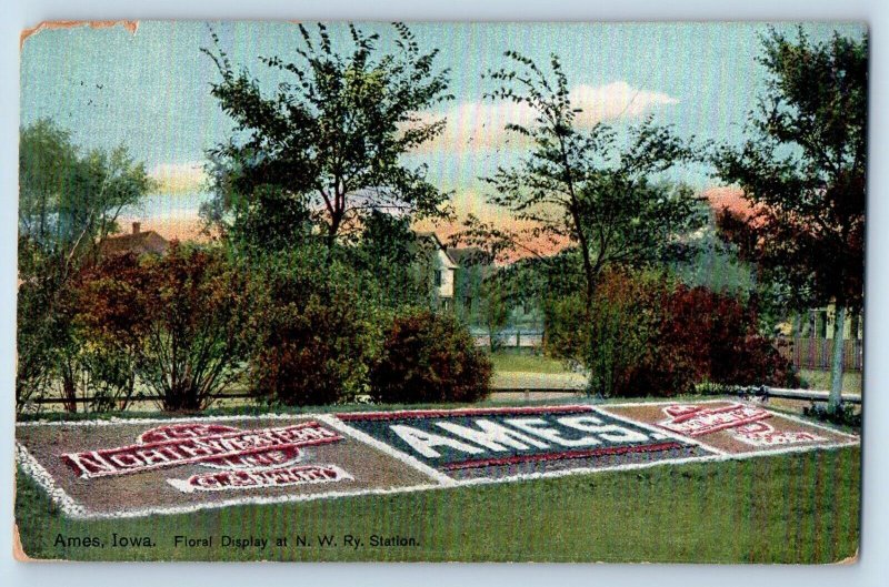 Ames Iowa IA Postcard Floral Display Station Exterior View c1911 Vintage Antique