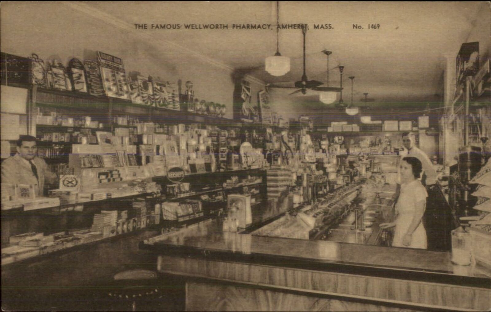 Amherst MA Wellworth Pharmacy Drugstore Interior Postcard