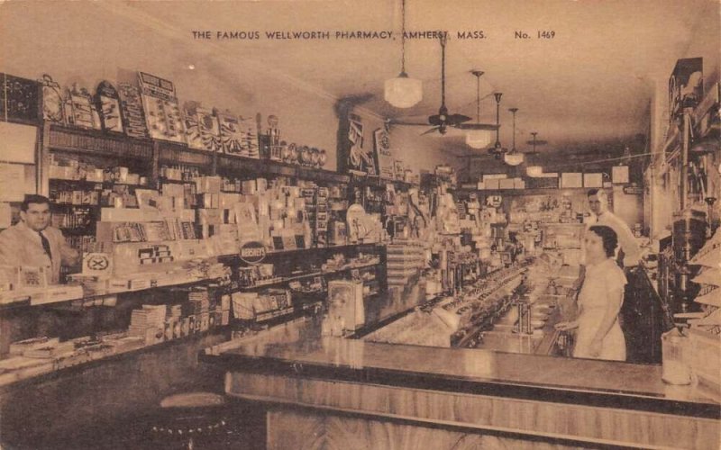Amherst Massachusetts Wellworth Pharmacy Drug Store Interior Postcard AA78998