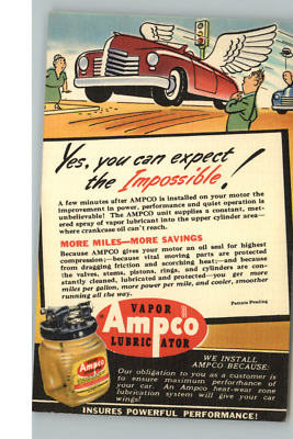 AMPCO LUBRICATOR Flying Car Ad Old Postcard