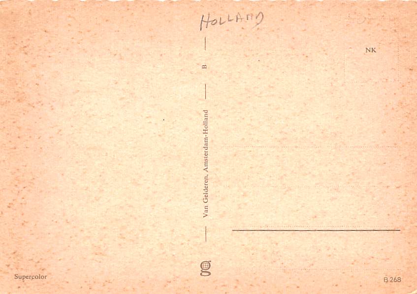 Amsterdam - Holland Grade: 1 Category: Continental Size Postcard, Approx 4 in x 6 in (10 cm x 15.25 cm) Product Size: Continental size: 4X6 inches (10.5 cm x 15 cm) Grading Scale: Grade 1 = Perfect corners Grad ... Read More