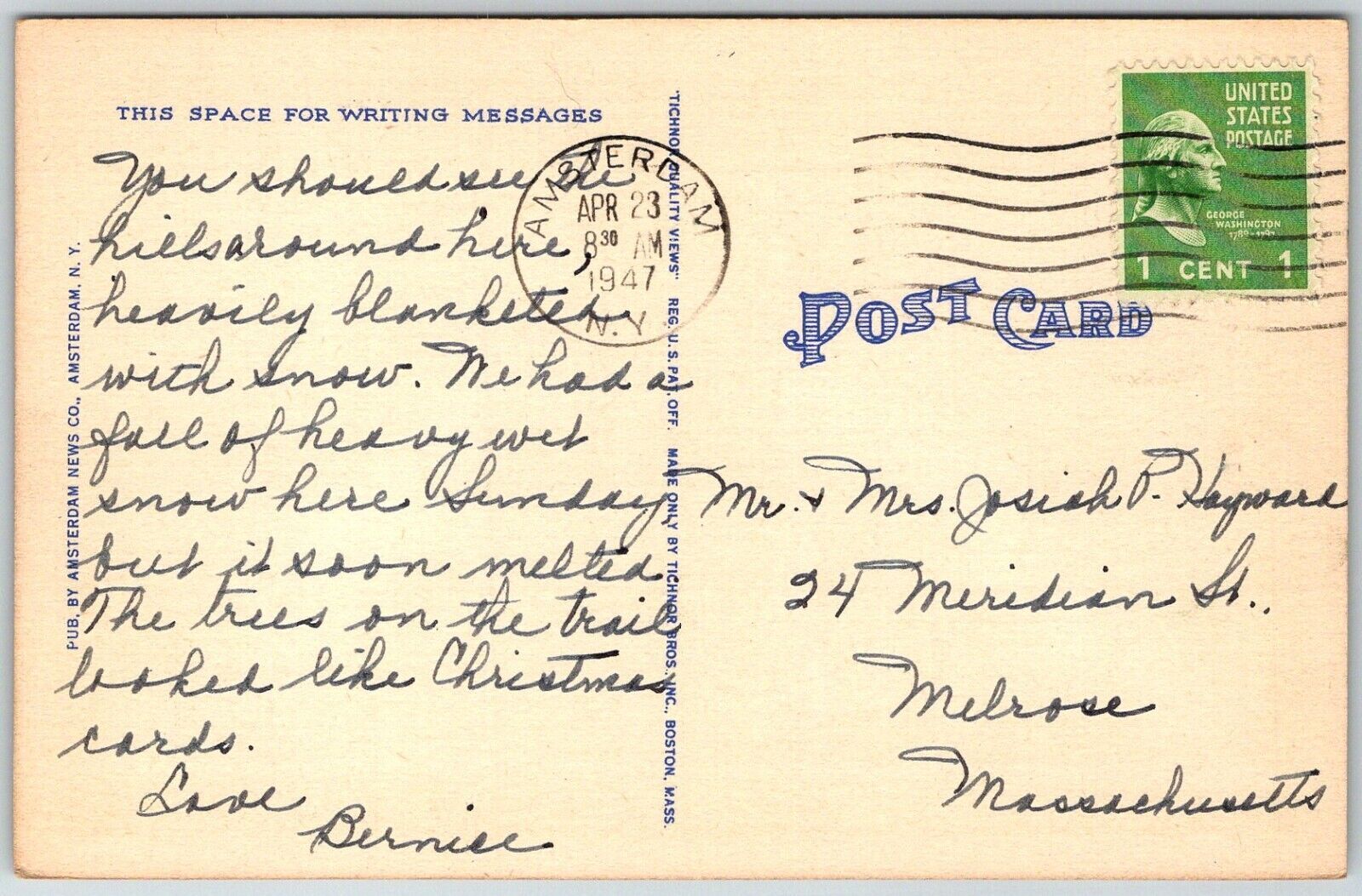 Amsterdam New York 1947 Postcard Guy Park Manor