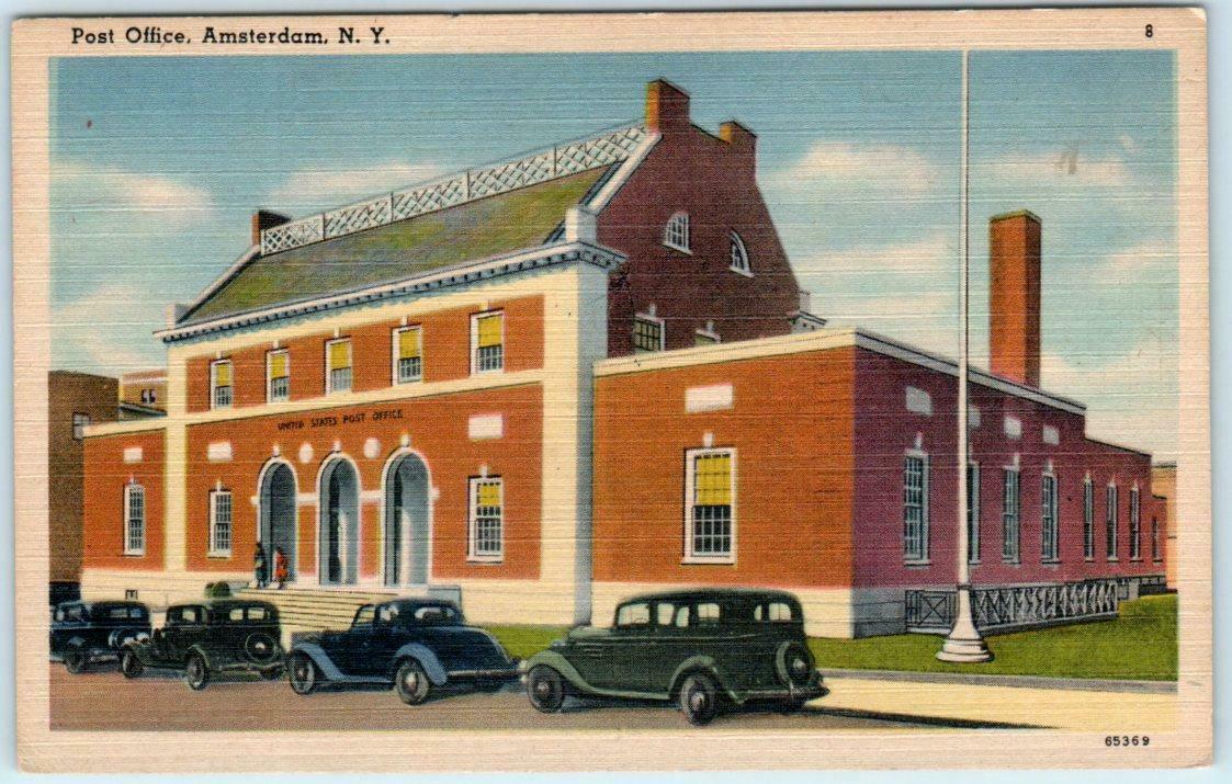 AMSTERDAM, New York NY POST OFFICE ca 1930s Linen Postcard