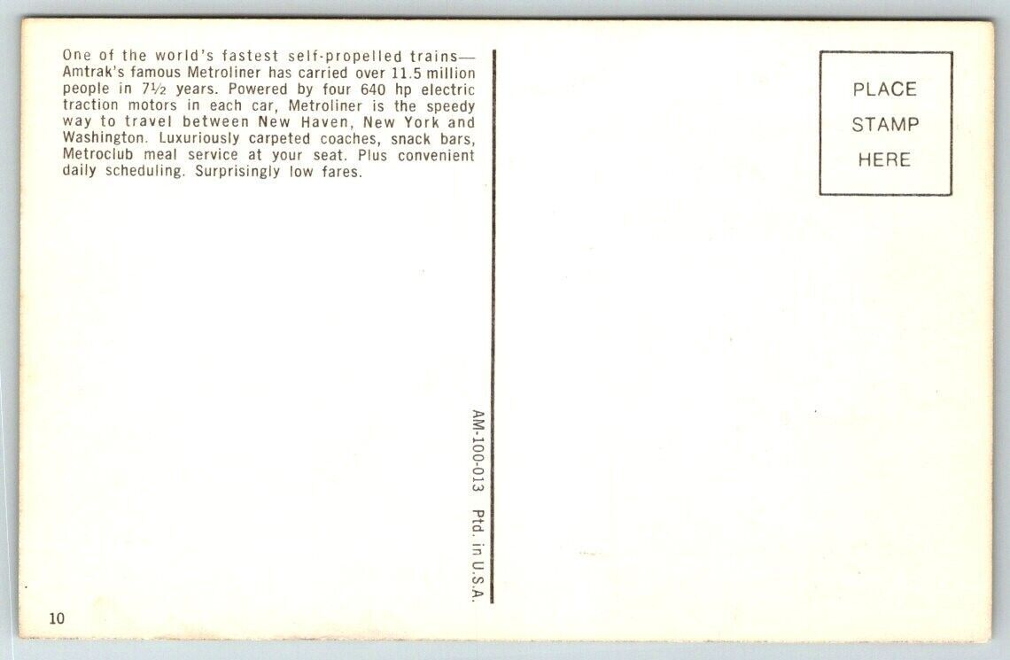 Amtrak Metroliner Train Railroad Postcard