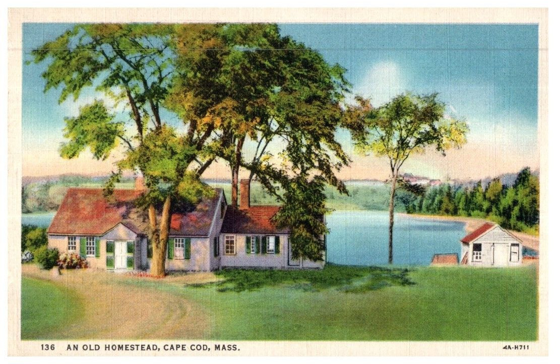 An Old Homestead Cape Cod Massachusetts Postcard Posted 1935
