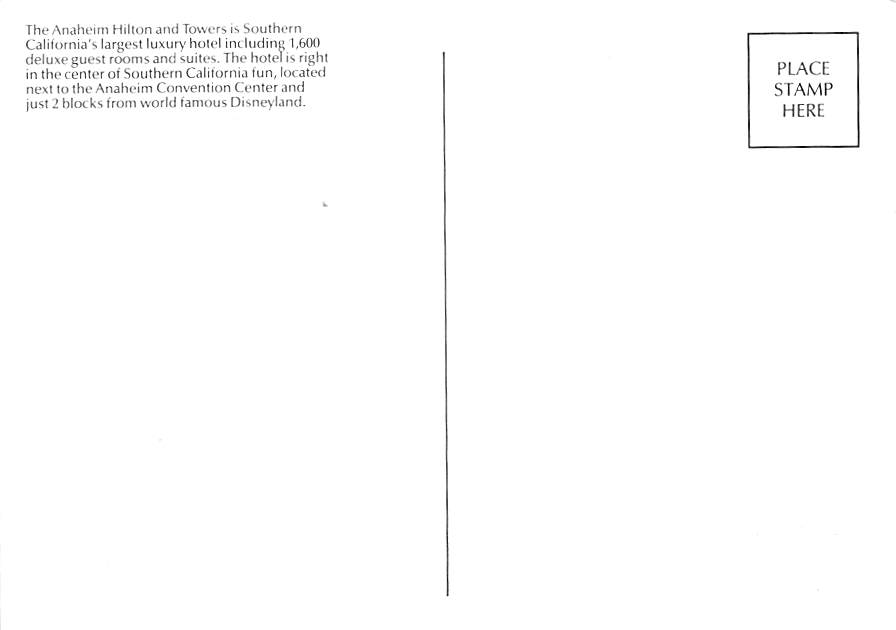 Anaheim Hilton - Grade: 2 Category: Continental Size Postcard, Approx 4 in x 6 in (10 cm x 15.25 cm) Product Size: Continental size: 4X6 inches (10.5 cm x 15 cm) Grading Scale: Grade 1 = Perfect corners Grade 2 ... Read More