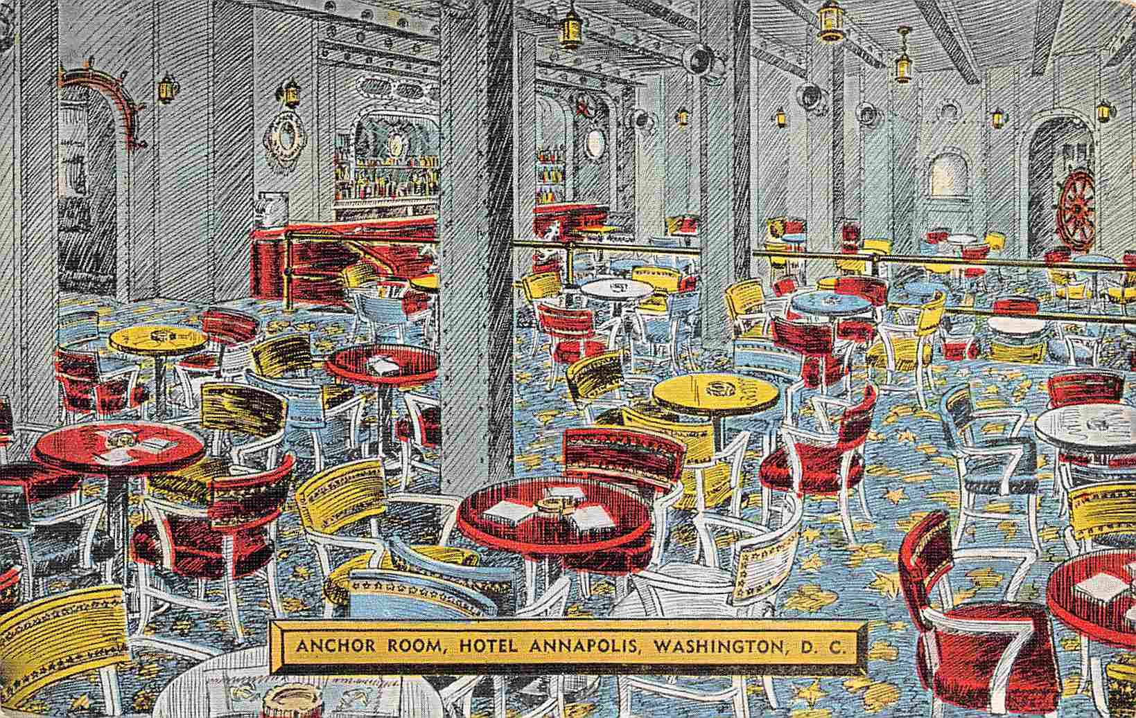 Anchor Room Interior Hotel Annapolis Washington DC linen postcard