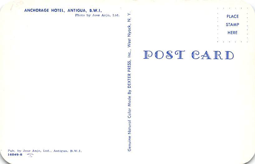Anchorage Hotel Aruba Postcard Unused, Grade: 1, , Size: Regular size: Approx 3 1/2 X 5 1/2 inch (9 cm X 14 cm) Grading Scale: Grade 1 = Perfect corners Grade 2 = Very Minimal corner wear, no creases Grade 3 = ... Read More
