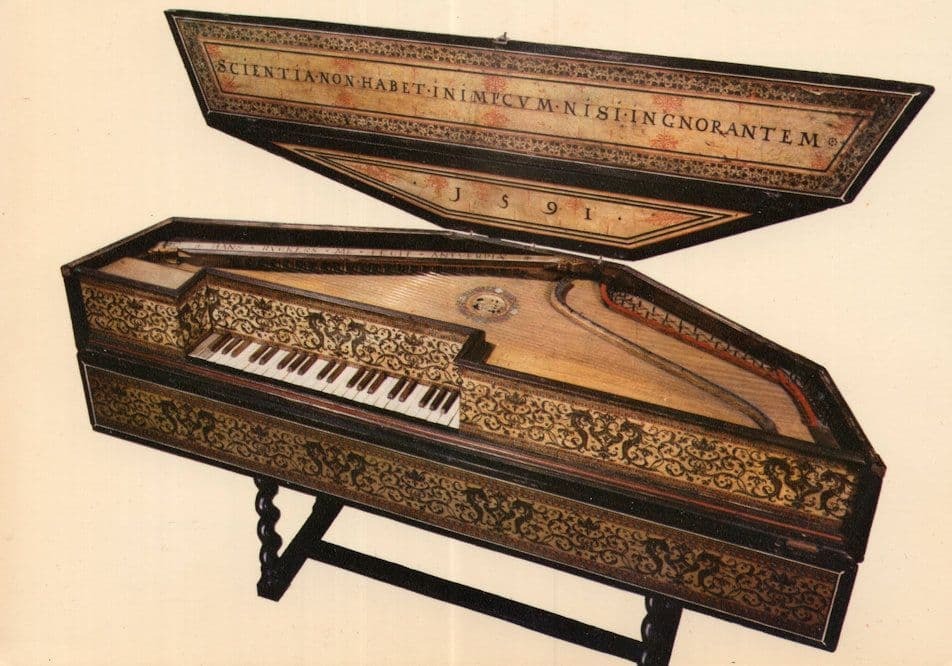bg29 A rare 1980s postcard of this famous old Harpsicord (details of the Harpsichord on reverse) unused and near prestine condition