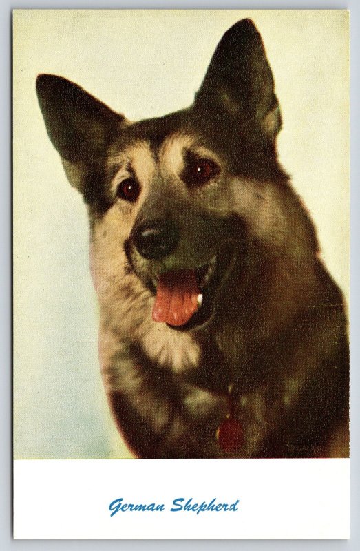 Animal~German Shepherd Dog Portrait~Happy~Collar~Light Background~1950s Postcard