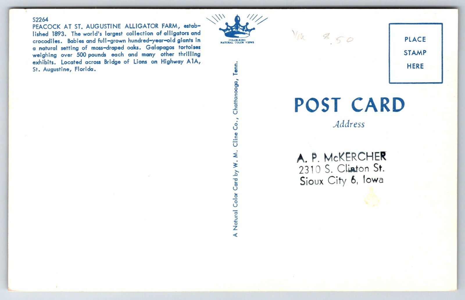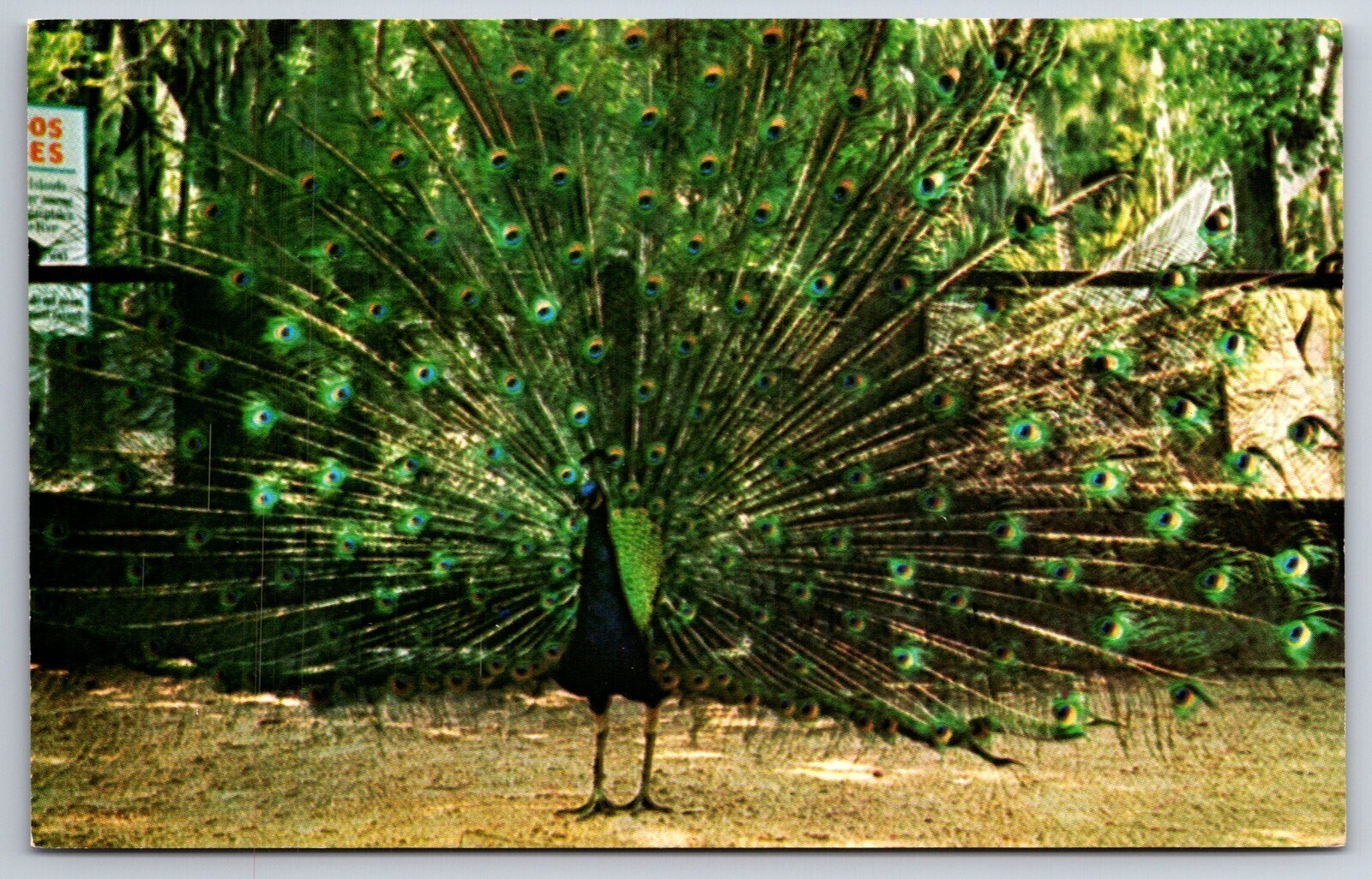 Animals~Peacock @ St Augustine Florida Zoo~Vintage Postcard