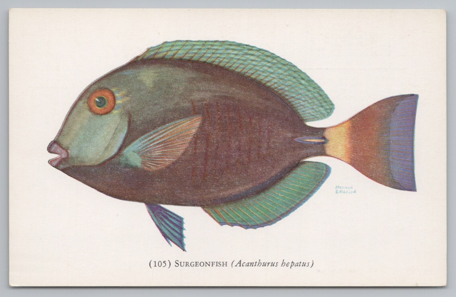 Animal~Surgeonfish~Acanhurus Baputus~Vintage Postcard