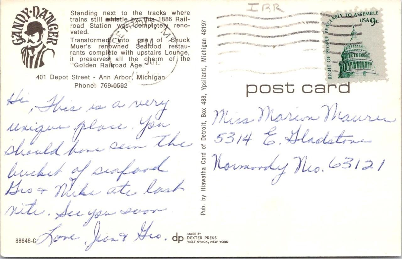 Ann Arbor MI Michigan GANDY DANCER RESTAURANT VIEWS ca1960's Roadside Postcard
