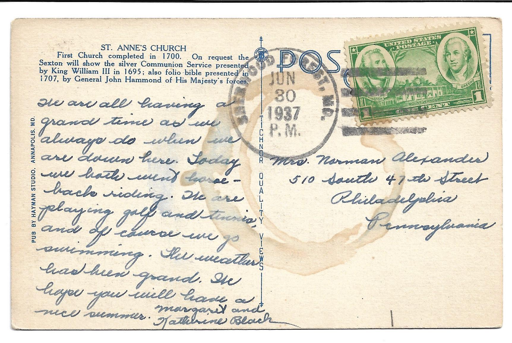 Annapolis, MD - St. Anne's Church - 1937
