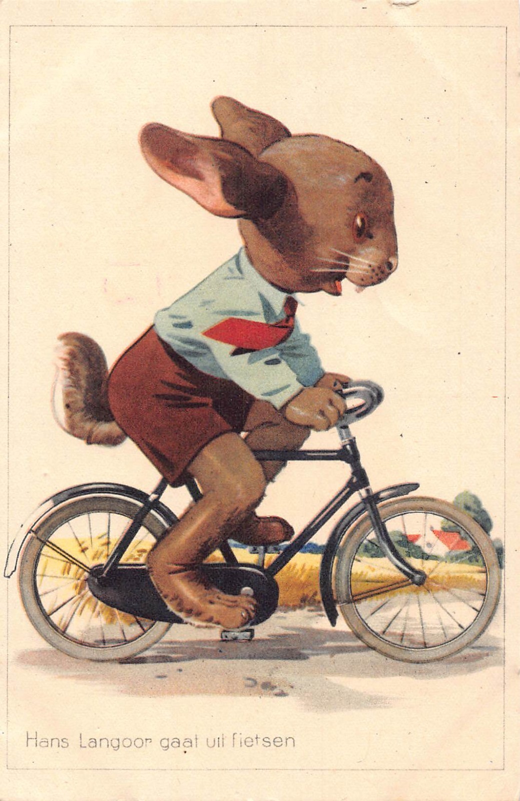 Anthropomorphic Humanized Rabbit Riding Bicycle 1942 postcard B886 This item is listed via xdm.it software