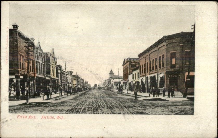Antigo WI Fifth Ave c1910 Postcard