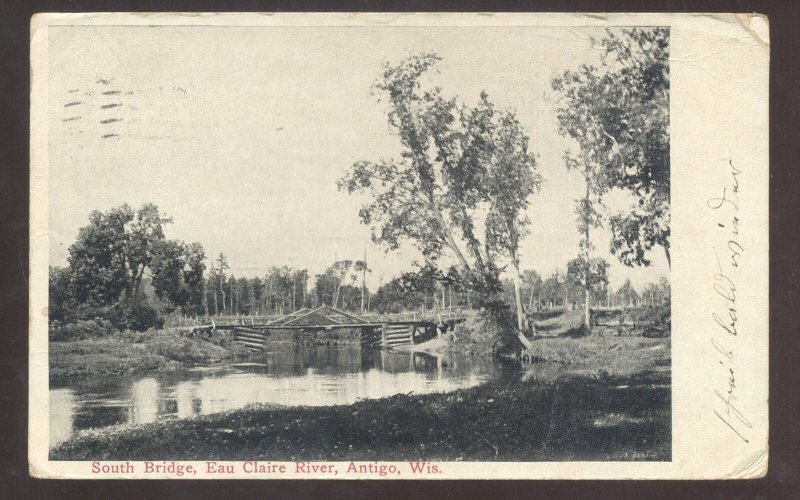ANTIGO WISCONSIN SOUTH BRIDGE EAU CLAIRE RIVER VINTAGE POSTCARD
