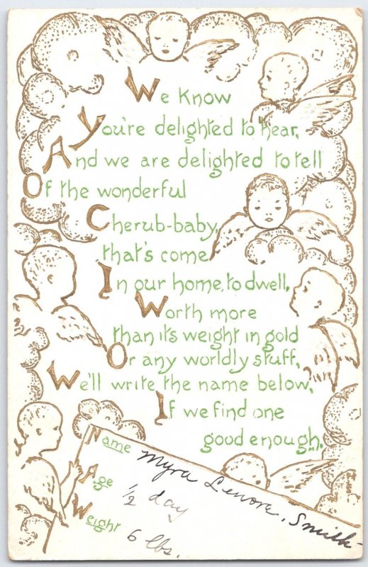Antique Cherub-Baby Birth Announcement Postcard Dated 1911