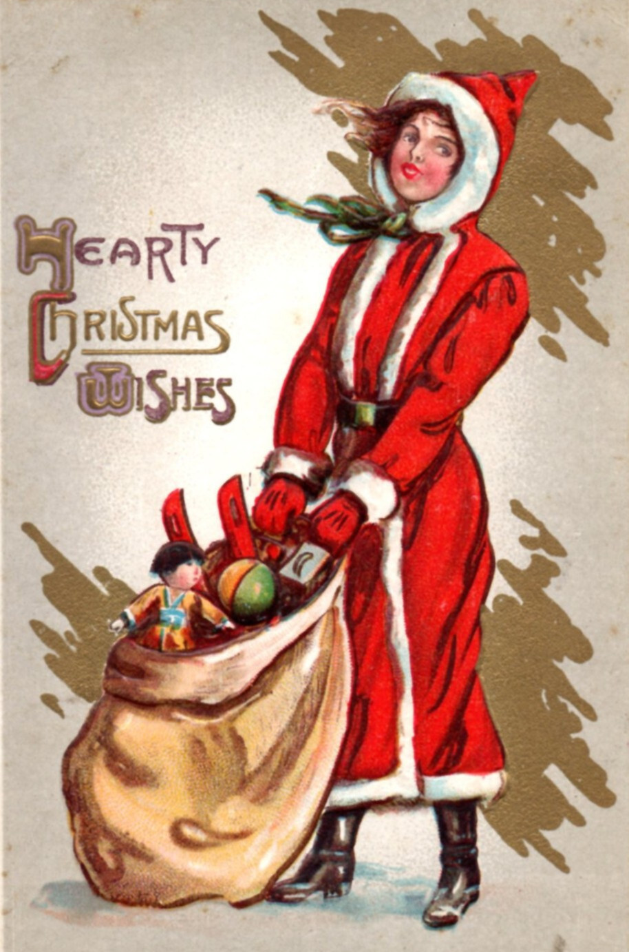Antique Christmas Pretty Lady Santa Claus Girl Postcard