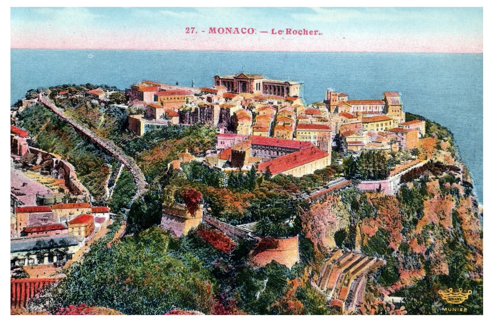 Antique Monaco Le Rocher Vintage Postcard Munier Scenic View