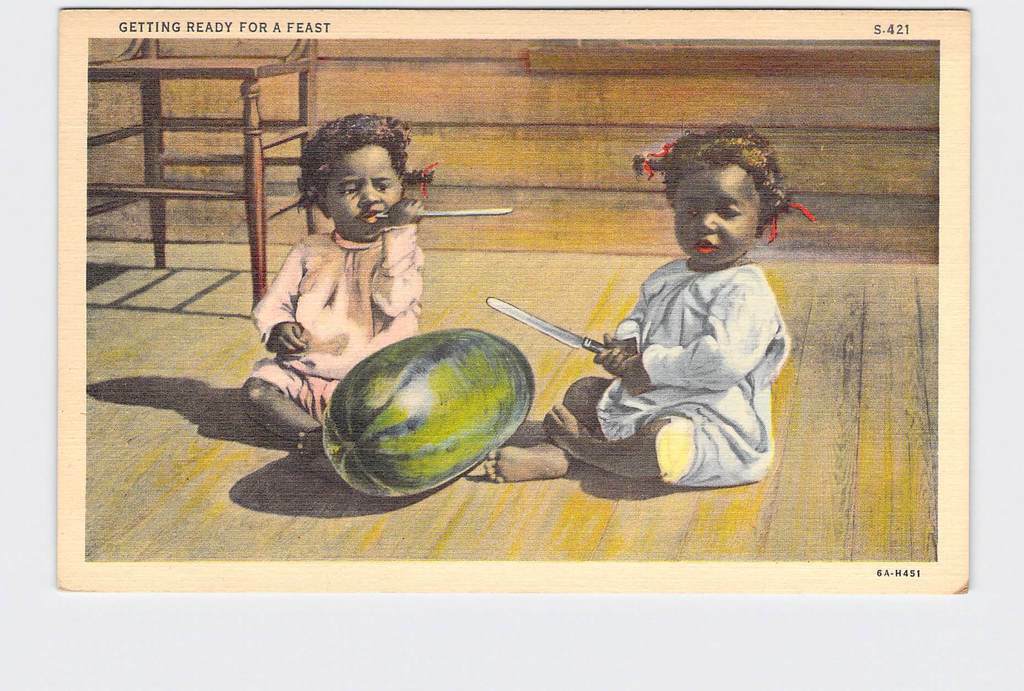 ANTIQUE POSTCARD BLACK AMERICANA GETTING READY FOR ANTIQUE FEAST #2