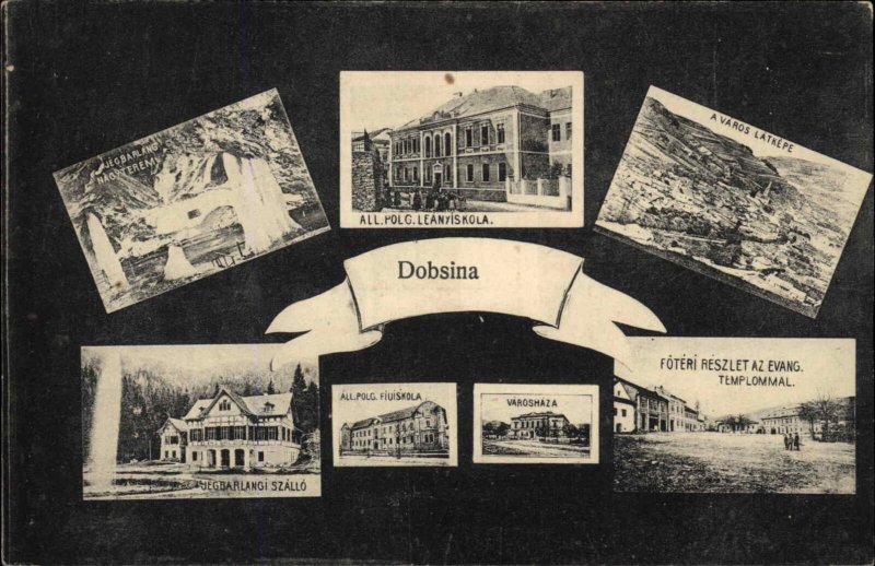 Antique Postcard Dobsina Slovakia Multi-View Slovakian Landmarks