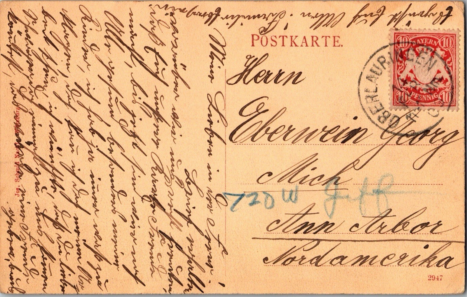 Antique Postcard Gruss aus Oberlauringen Bavaria Germany JB2